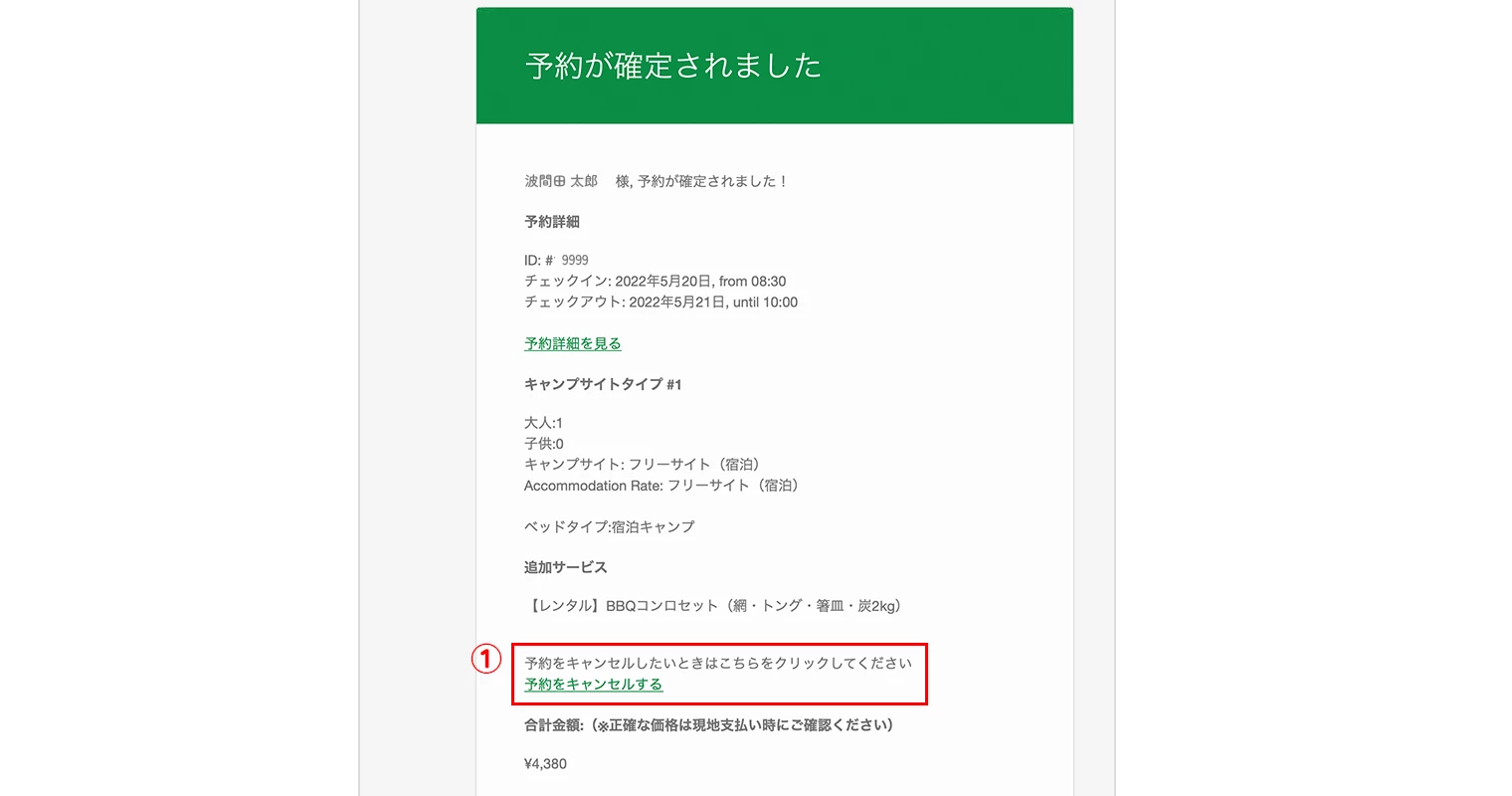 予約確定メールに記載されている「予約をキャンセルする」をクリックしてください。