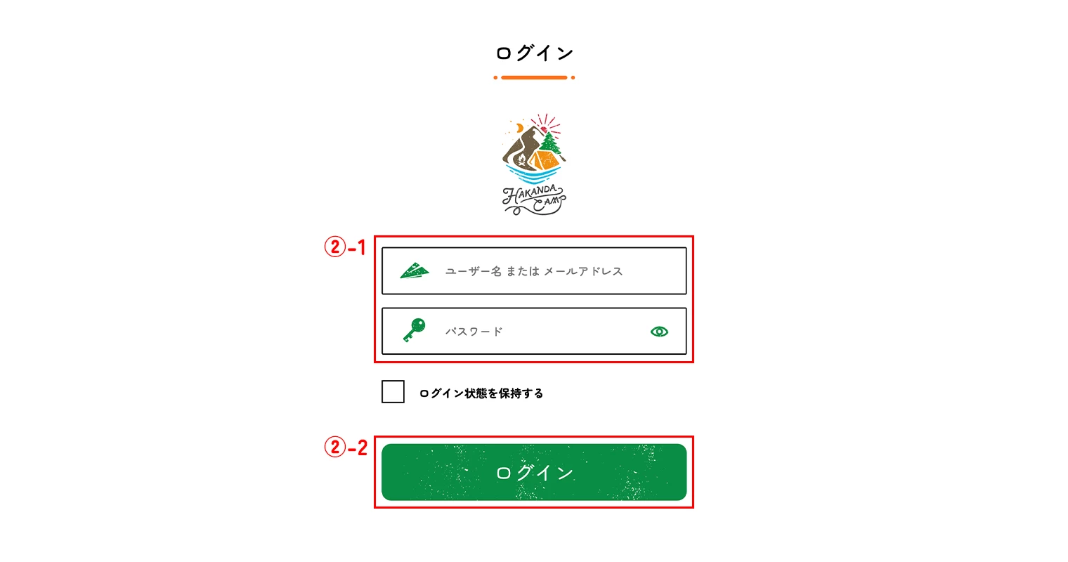 メールに記載されているユーザー名またはメールアドレス、パスワードを入力して(②-1)ログインします(②-2)。