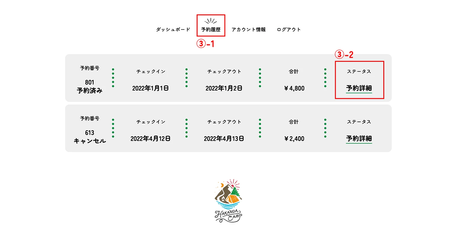ダッシュボードからメニューの「予約履歴」をクリックすると、現在の予約状況と過去の予約履歴を確認できます。
